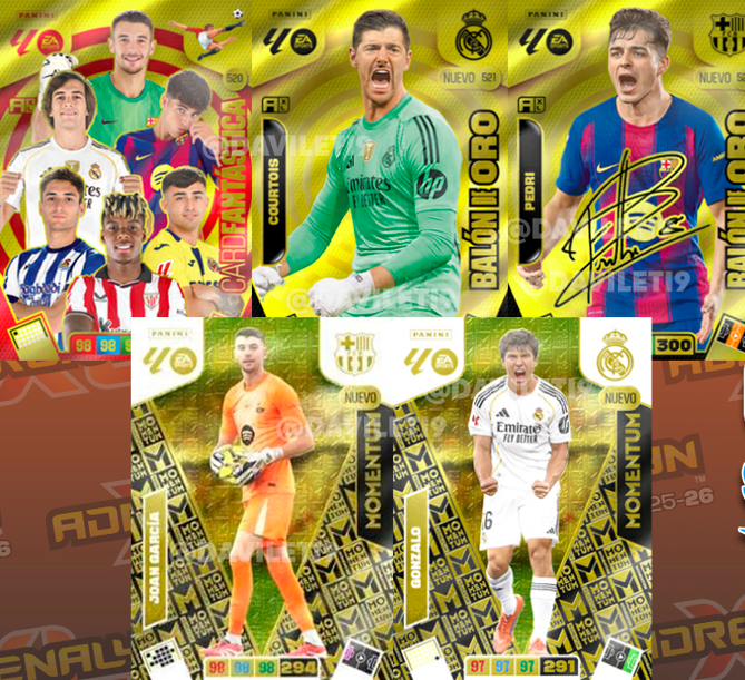 Los nuevos Balones de Oro listados son: 520 Card Fantástica, 521 Courtois y 522 Pedri firmado.